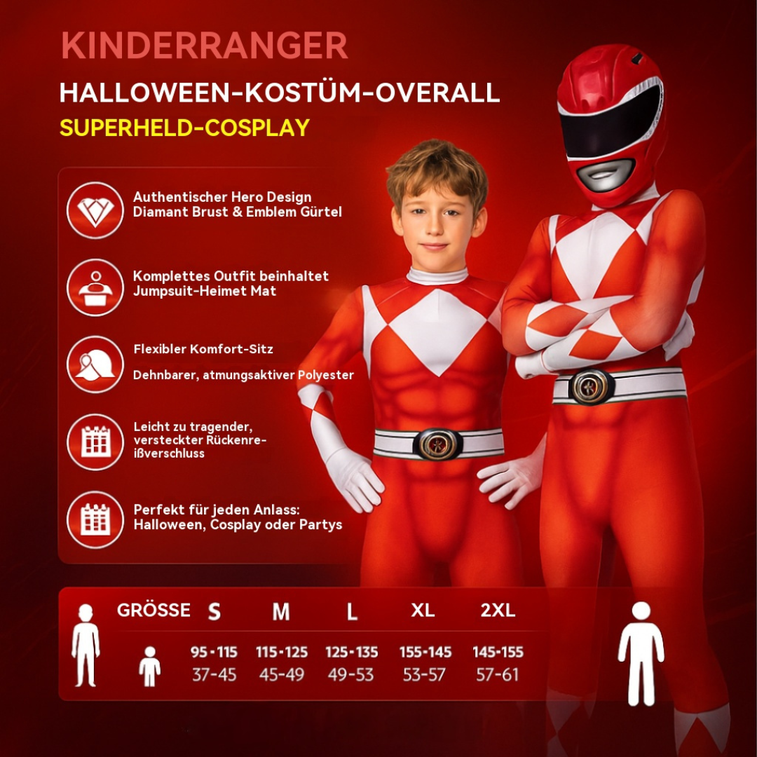 • Design: Einteiliger Superhelden Overall im Ranger Stil
